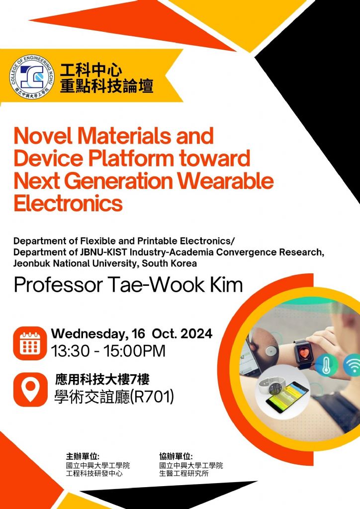 《工科中心重點科技論壇》Novel Materials and Device Platform toward Next Generation Wearable Electronics