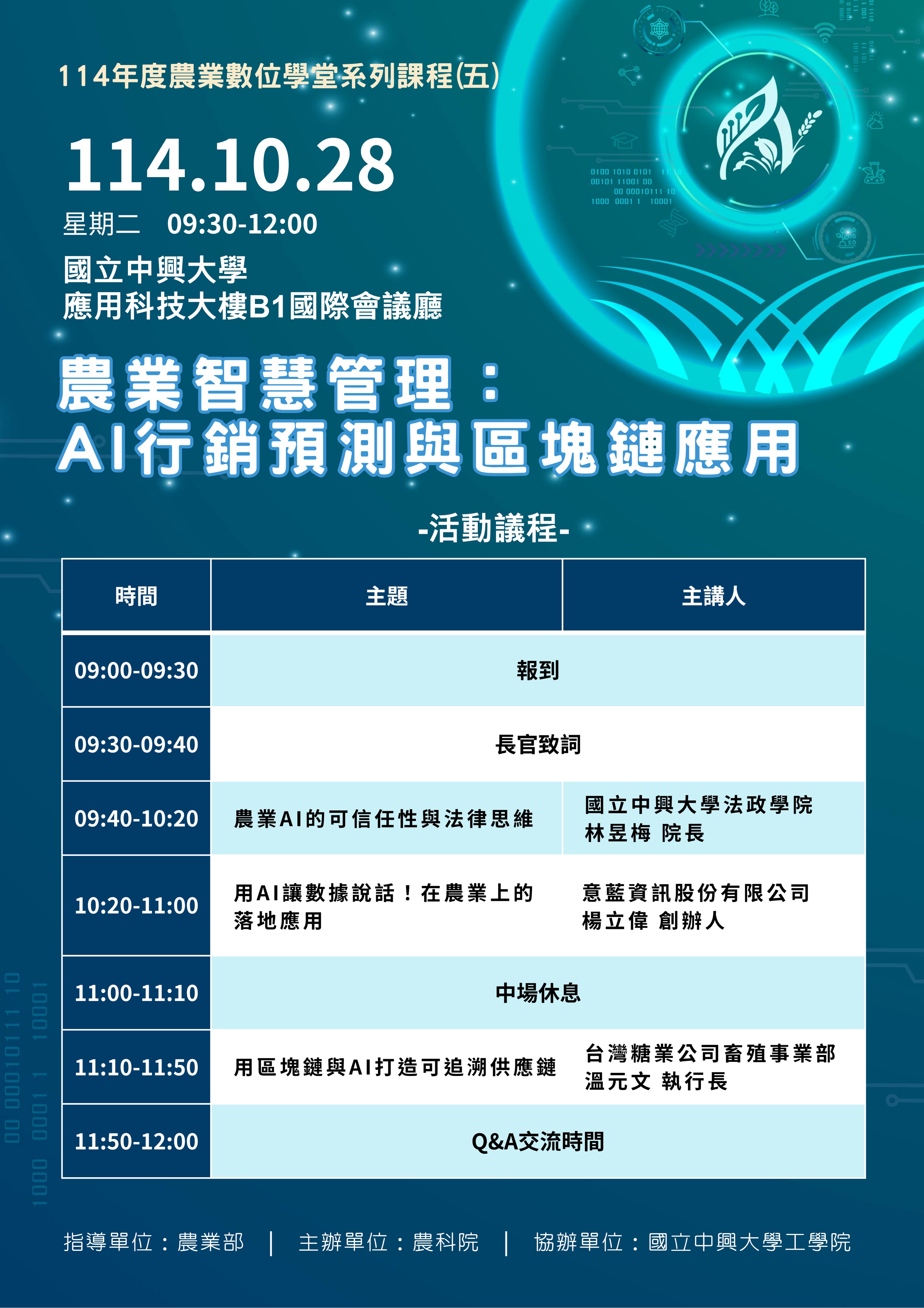📢 114年農業數位學堂系列課程(五)開放報名!