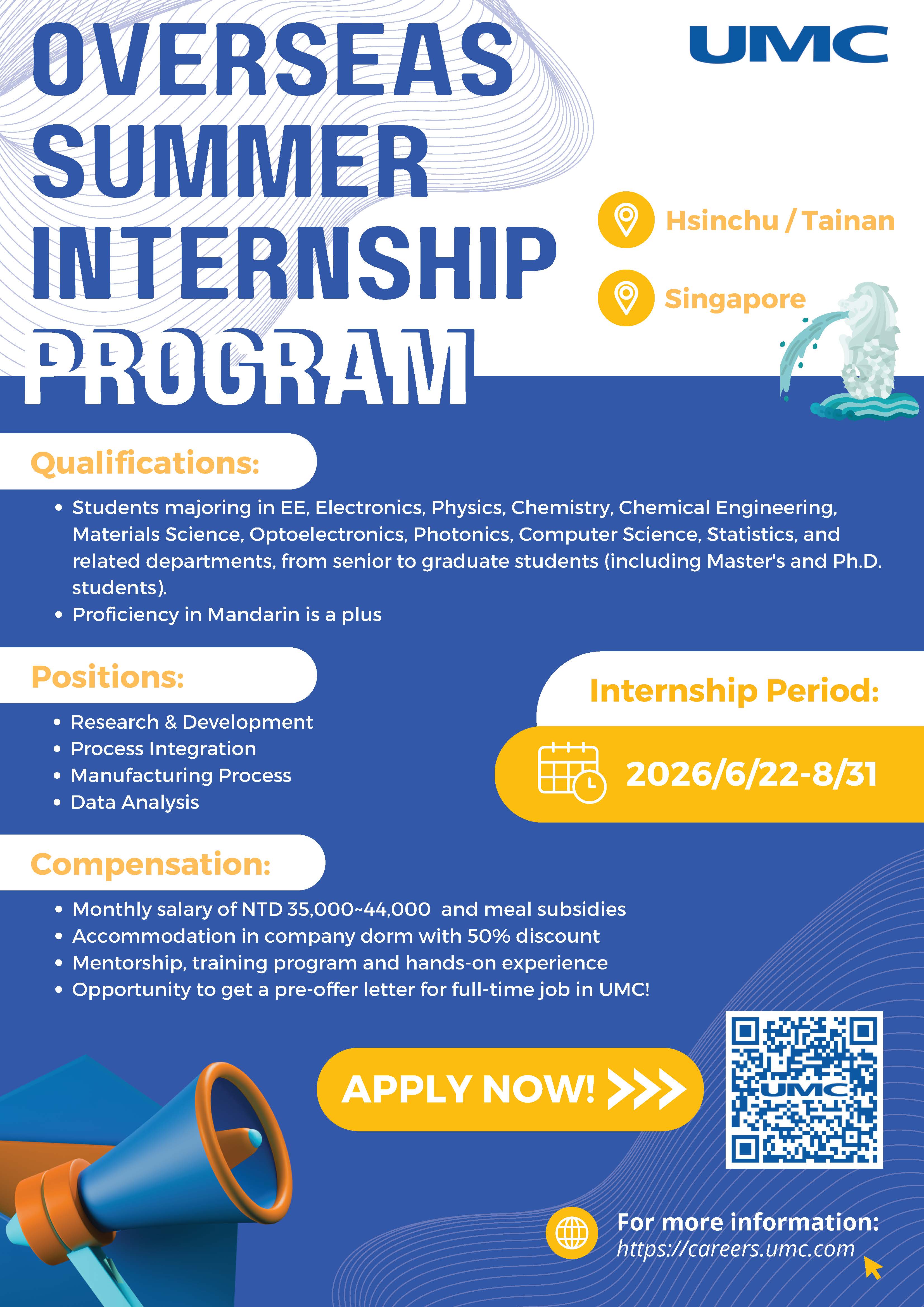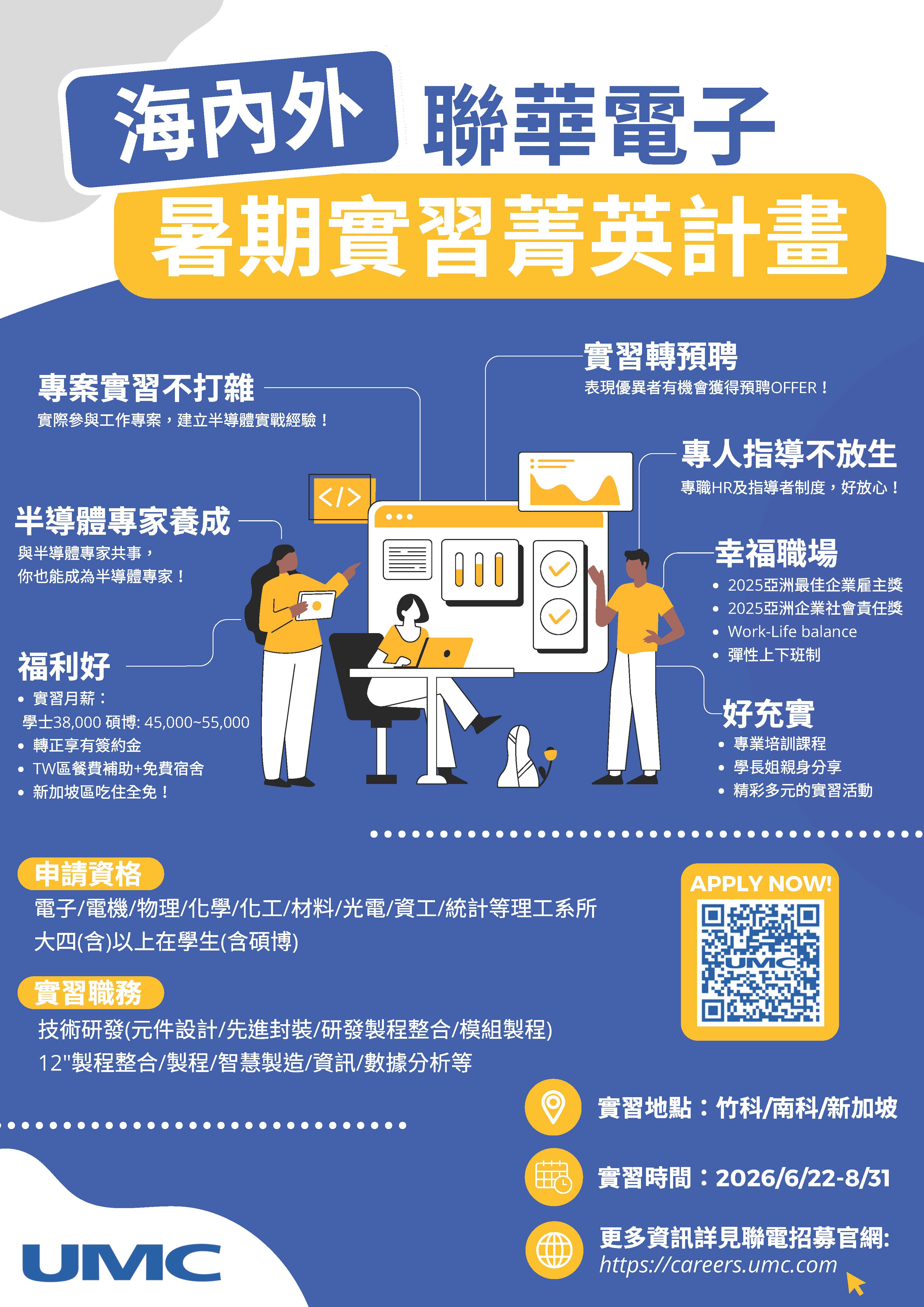 2026聯電海內外暑期實習菁英計畫正式招募!